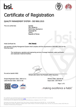 ISO 45001 안전보건경영시스템 인증 (Since 2014.11.26)